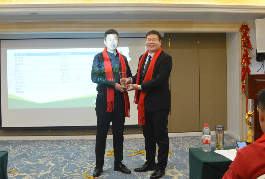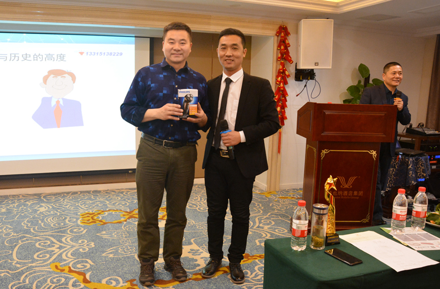 銷售經(jīng)理宣布了2018年優(yōu)秀經(jīng)銷商得獎人名單,董事長、總經(jīng)理為各位得獎嘉賓頒獎。