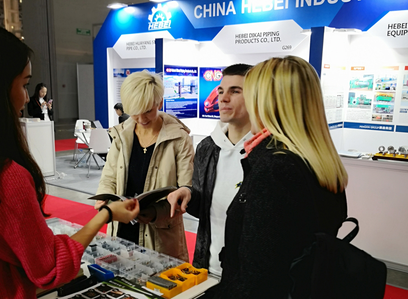 參展商到青龍劍展廳前咨詢產(chǎn)品詳情,本次展會由莫斯科大學(xué)博士后、中國最美志愿者徐琛全程翻譯。