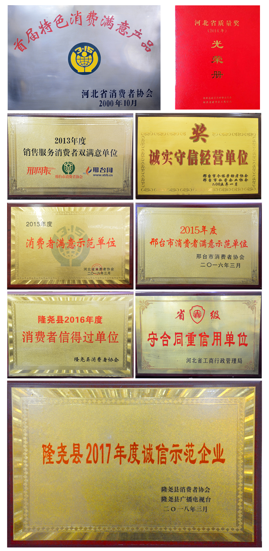 會(huì)上,發(fā)布了消費(fèi)警示,質(zhì)量抽檢通報(bào),并對群眾投訴名單進(jìn)行了曝光。隨后對誠信經(jīng)營企業(yè)做出表彰。期間播放了青龍劍釘業(yè)宣傳片,并為企業(yè)頒發(fā)了“隆堯縣2017年度誠信示范企業(yè)”獎(jiǎng)牌。