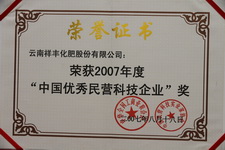 2007年度"中國(guó)優(yōu)秀民營(yíng)科技企業(yè)"獎(jiǎng)