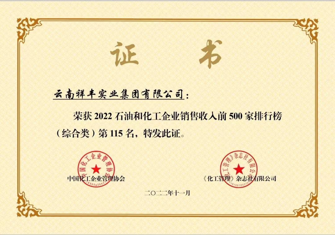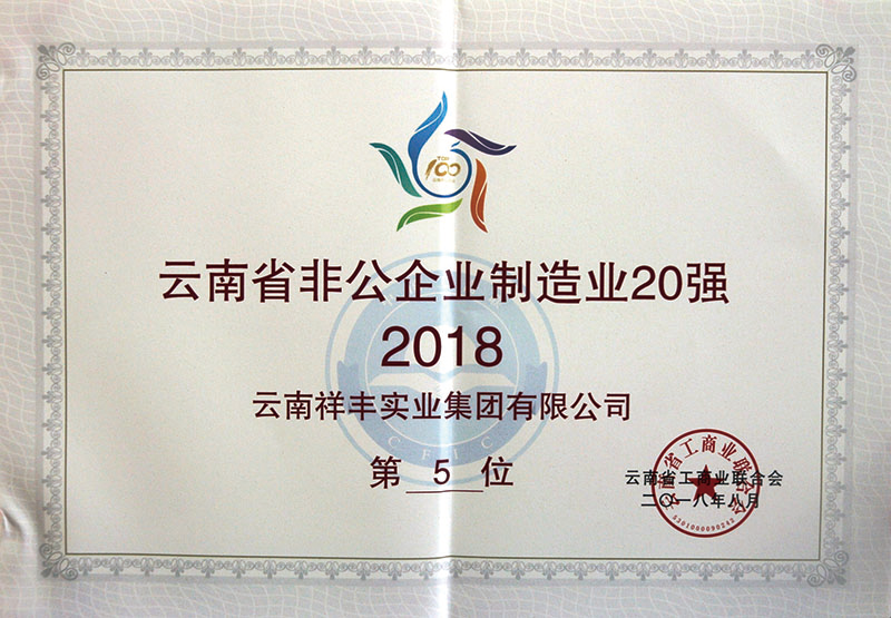 2018年12月16日,2018(第十一屆)中國化肥企業(yè)100強(qiáng)發(fā)布會(huì)暨國家化肥品牌計(jì)劃高峰論壇在山東青島舉行。云南祥豐集團(tuán)位列中國磷復(fù)肥企業(yè)100強(qiáng)第十名,中國化肥企業(yè)100強(qiáng)第十九名