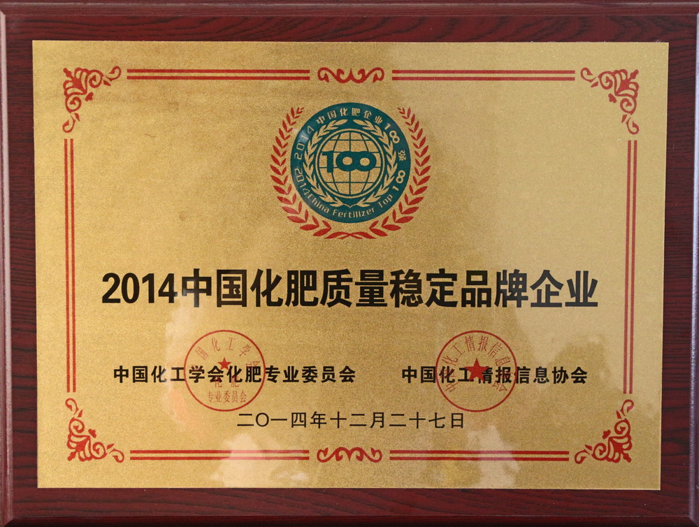 2014中國化肥質(zhì)量穩(wěn)定品牌企業(yè)